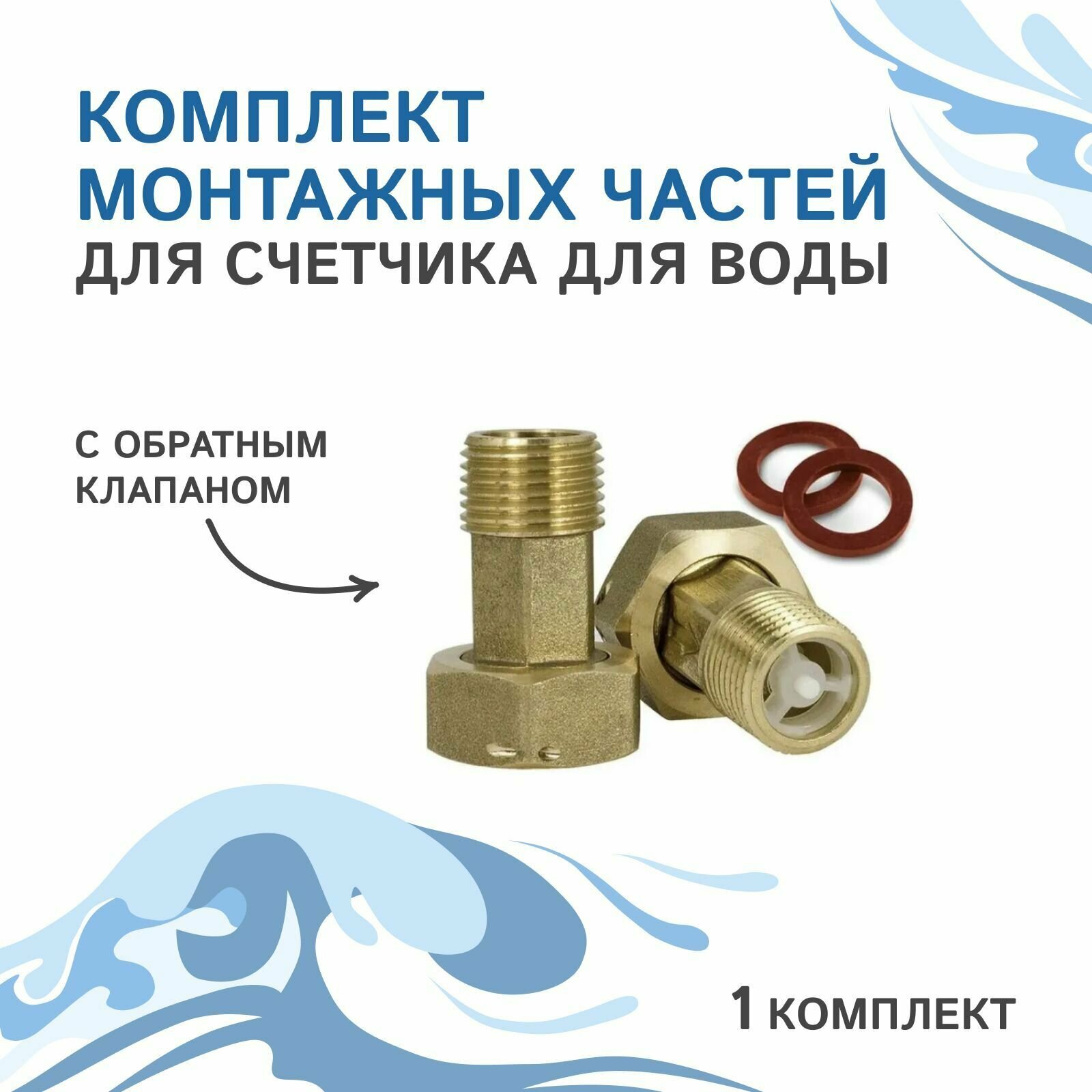 Комплект монтажных частей для счетчика для воды с обратным клапаном 1 комп (2 шт.). интересное: