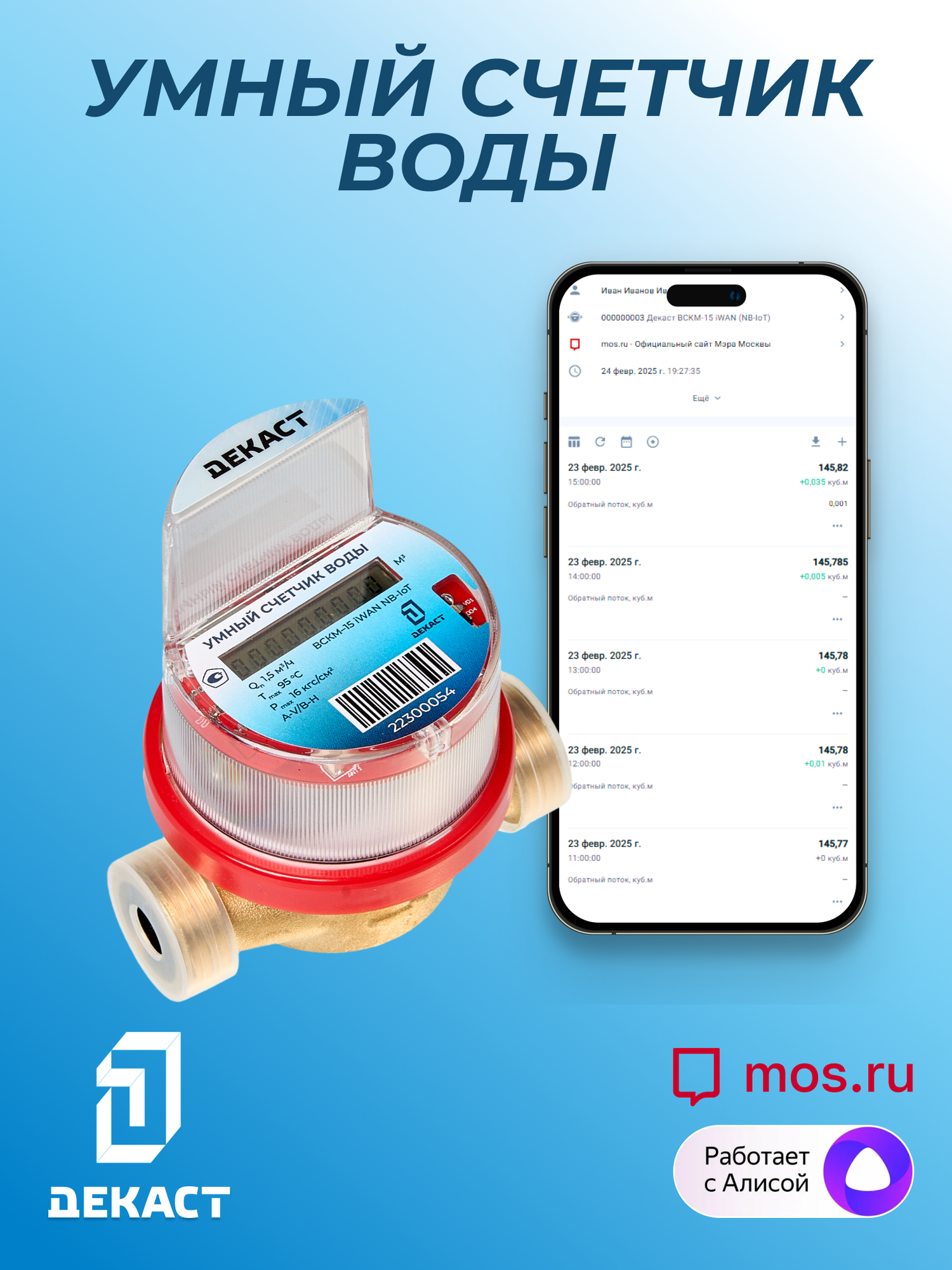 Умный счетчик воды Декаст ВСКМ-15 iWAN NB-IoT, L80мм, с кмч интересное: