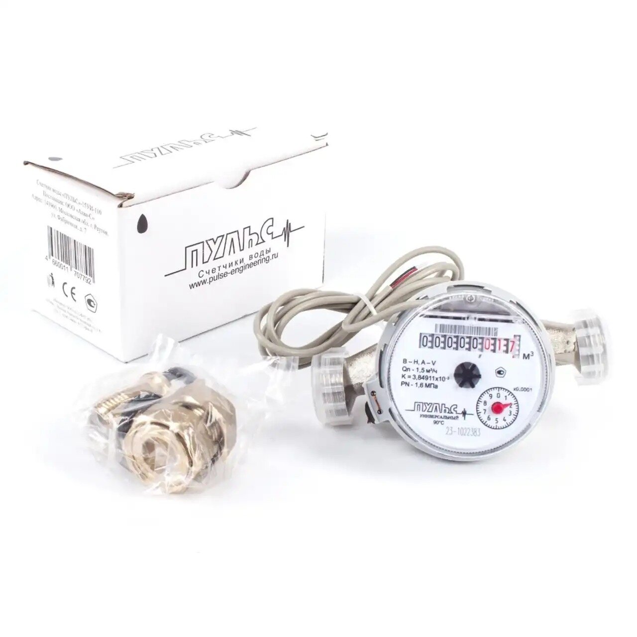 Купить Счетчик воды "Пульс" 15УИ-110 импульсный, Ду15, L=110 мм, с монтажным комплектом, гарантия 3 года
