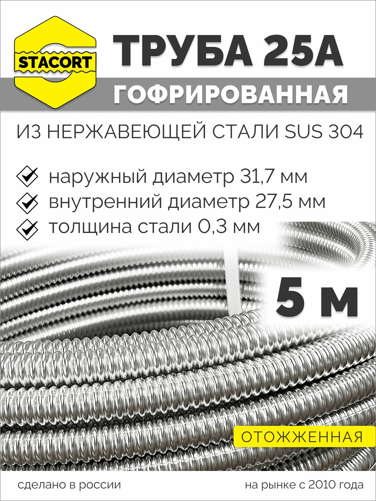 5 м. 25А Труба гофрированная водопроводная из нержавеющей стали 25А, отожженная, STACORT интересное: