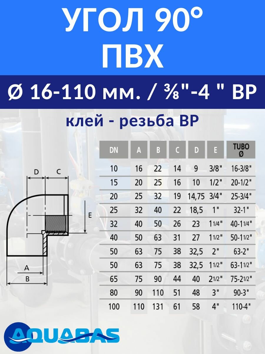 Угол 90 ПВХ переходной (клей/резьба), 63 мм х ВР 2", PN16 отвод колено интересное: