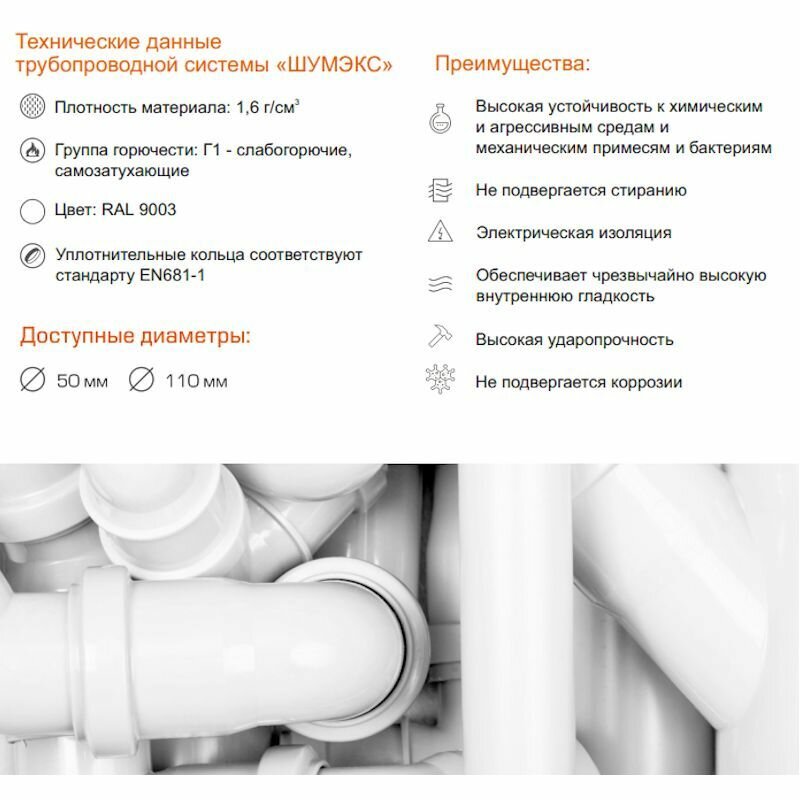 Труба канализационная Хемкор Шумэкс из НПВХ (PVC-U) 110х3,2х1000мм интересное: