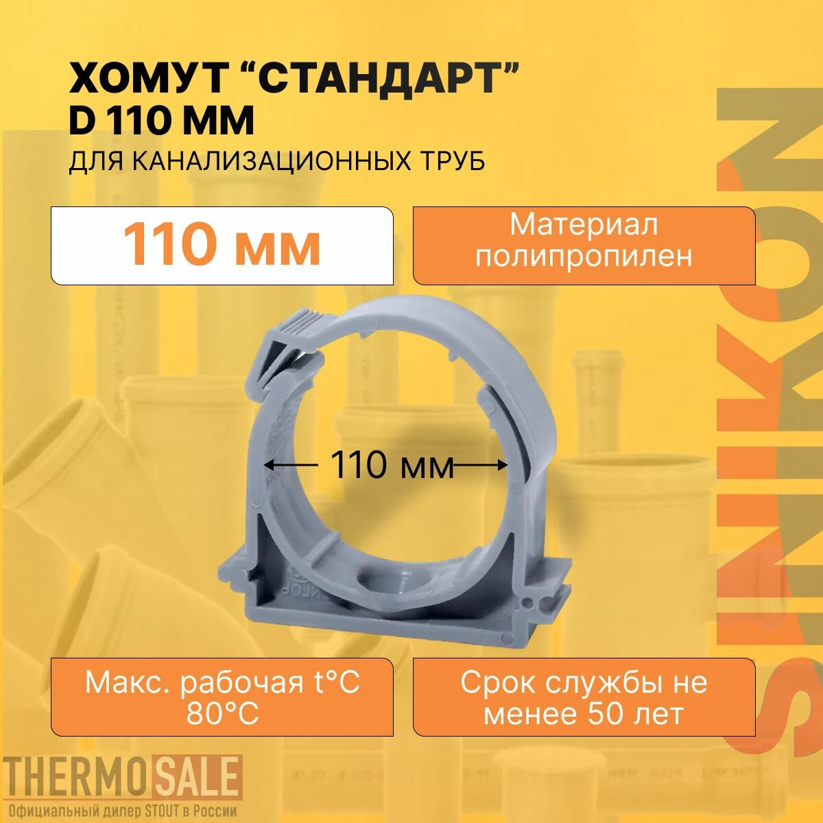 Хомут сантехнический для канализационных труб стандарт D 110 мм крепление цвет серый Sinikon интересное: