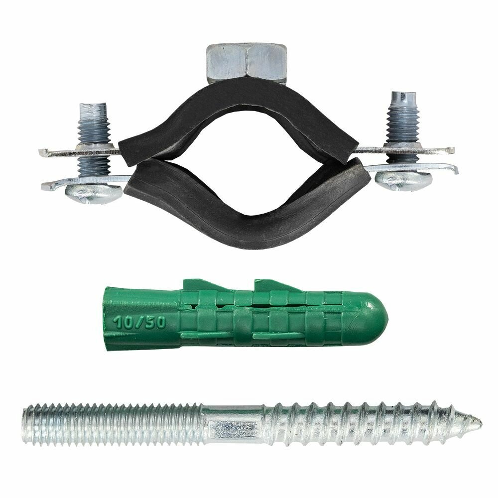 Хомут сантехнический 5 шт. 1.1/2" (48-53 мм) М8 оцинкованный, с резиновым уплотнителем, с шурупом и дюбелем