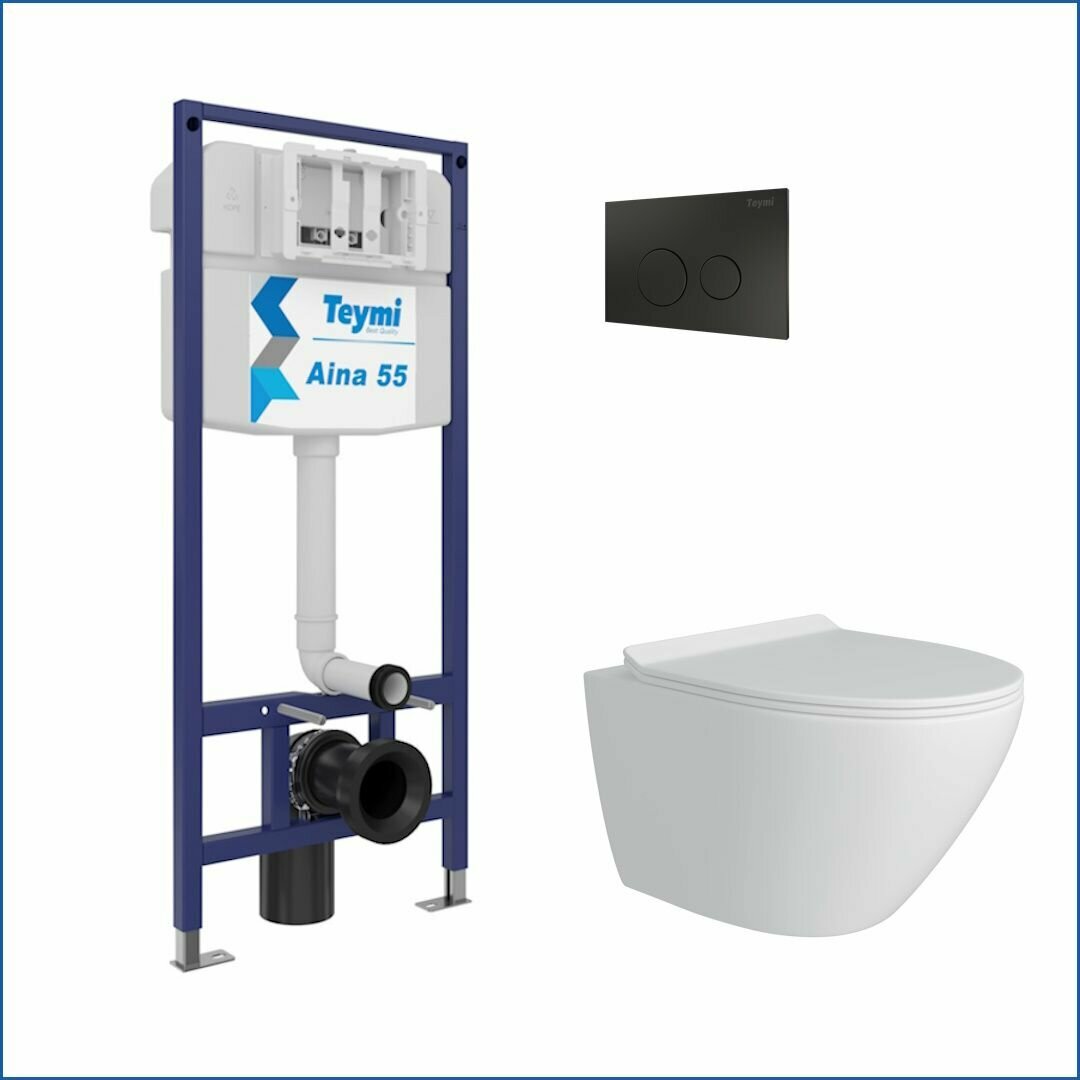 Инсталляция с унитазом комплект 5 в 1 Teymi унитаз подвесной безободковый Lina Pro кнопка черная F13869