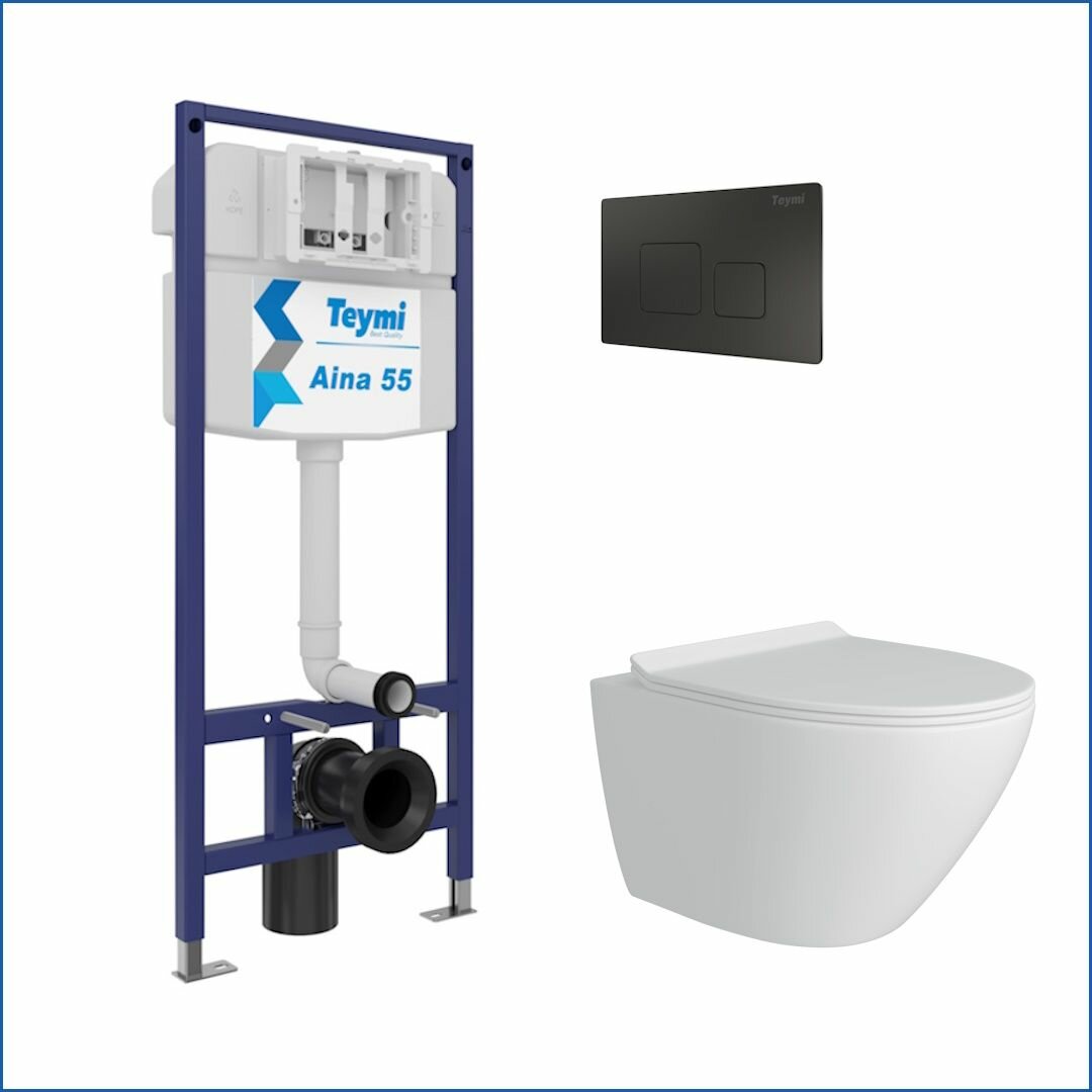 Ниже Вы можете прочитать отзывы на Инсталляция с унитазом комплект 5 в 1 Teymi унитаз подвесной безободковый Lina Pro кнопка черная F13869, ознакомится с подробными характеристиками, посмотреть интересные обзоры и фотографии на Инсталляция с унитазом комплект 5 в 1 Teymi унитаз подвесной безободковый Lina Pro кнопка черная F13869.