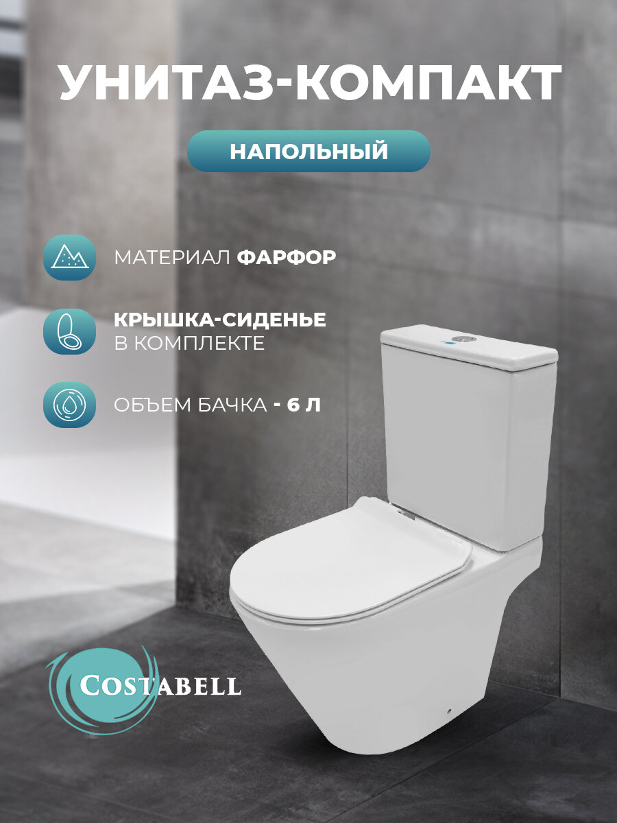 Купить Унитаз-компакт Costabell H1016 605х370х800 мм, сиденье дюропласт, микролифт, быстросъем