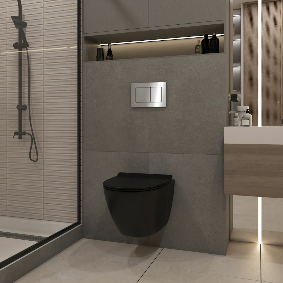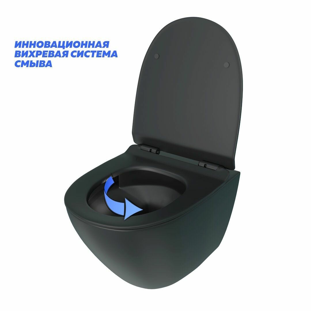СохранитьИнсталляция с унитазом комплект 5 в 1 Teymi унитаз подвесной безободковый торнадо черный Lina Pro Vortex Black кнопка нержавеющая сталь F15018 интересное: