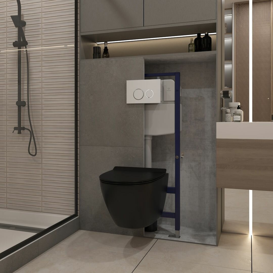 СохранитьИнсталляция с унитазом комплект 5 в 1 Teymi унитаз подвесной безободковый торнадо черный Lina Pro Vortex Black кнопка белая / хром F15014 интересное: