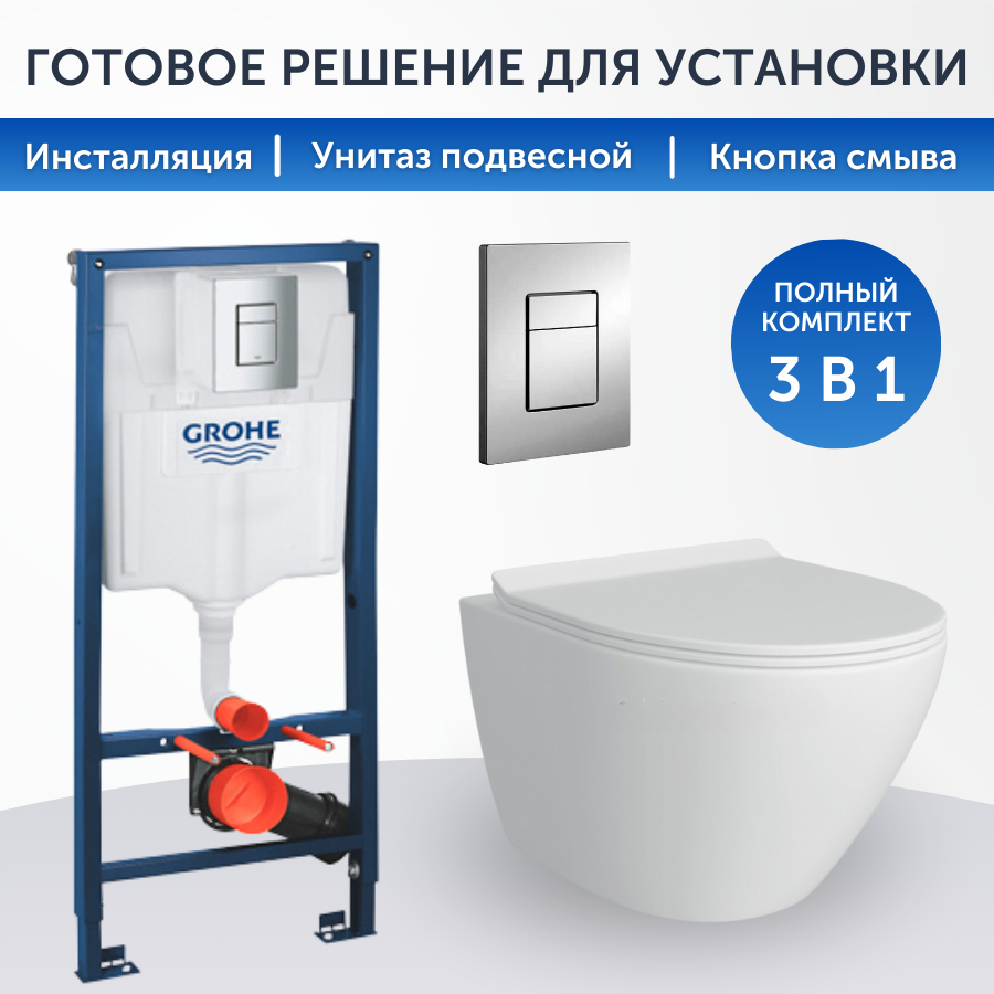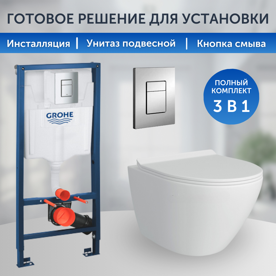 Инсталляция Grohe Rapid SL 38772001+унитаз Alicaness Juse P P1004 безободковый, сиденье микролифт интересное: