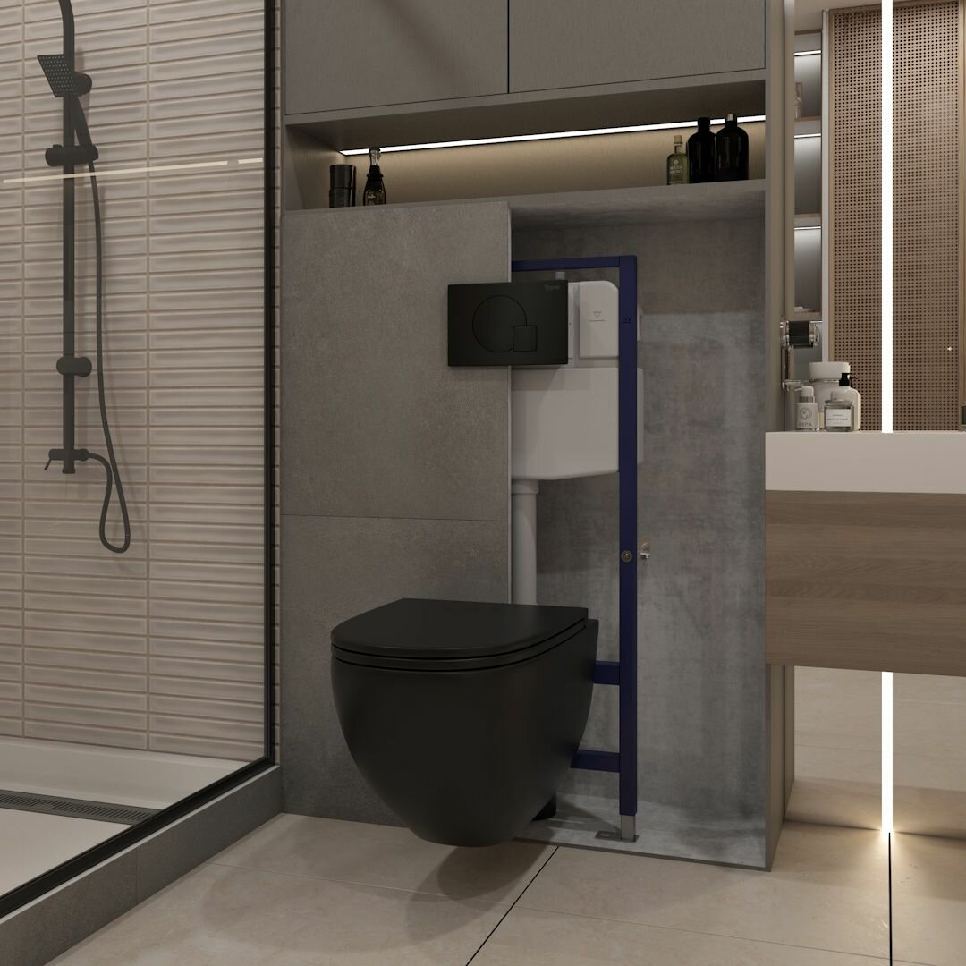 СохранитьИнсталляция с унитазом комплект 5 в 1 Teymi унитаз подвесной безободковый черный Lina S Black кнопка черная F13897 интересное: