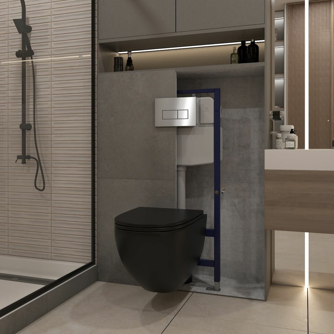 Инсталляция с унитазом комплект 5 в 1 Teymi унитаз подвесной безободковый черный Lina S Black кнопка черная F13889
