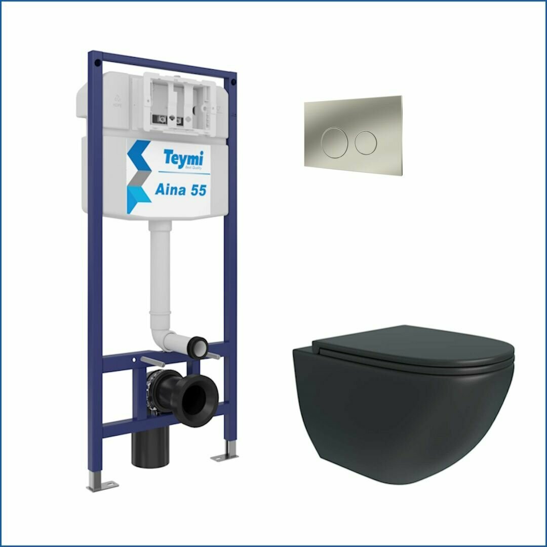 Инсталляция с унитазом комплект 5 в 1 Teymi унитаз подвесной безободковый черный Lina S Black кнопка нержавеющая сталь F13899