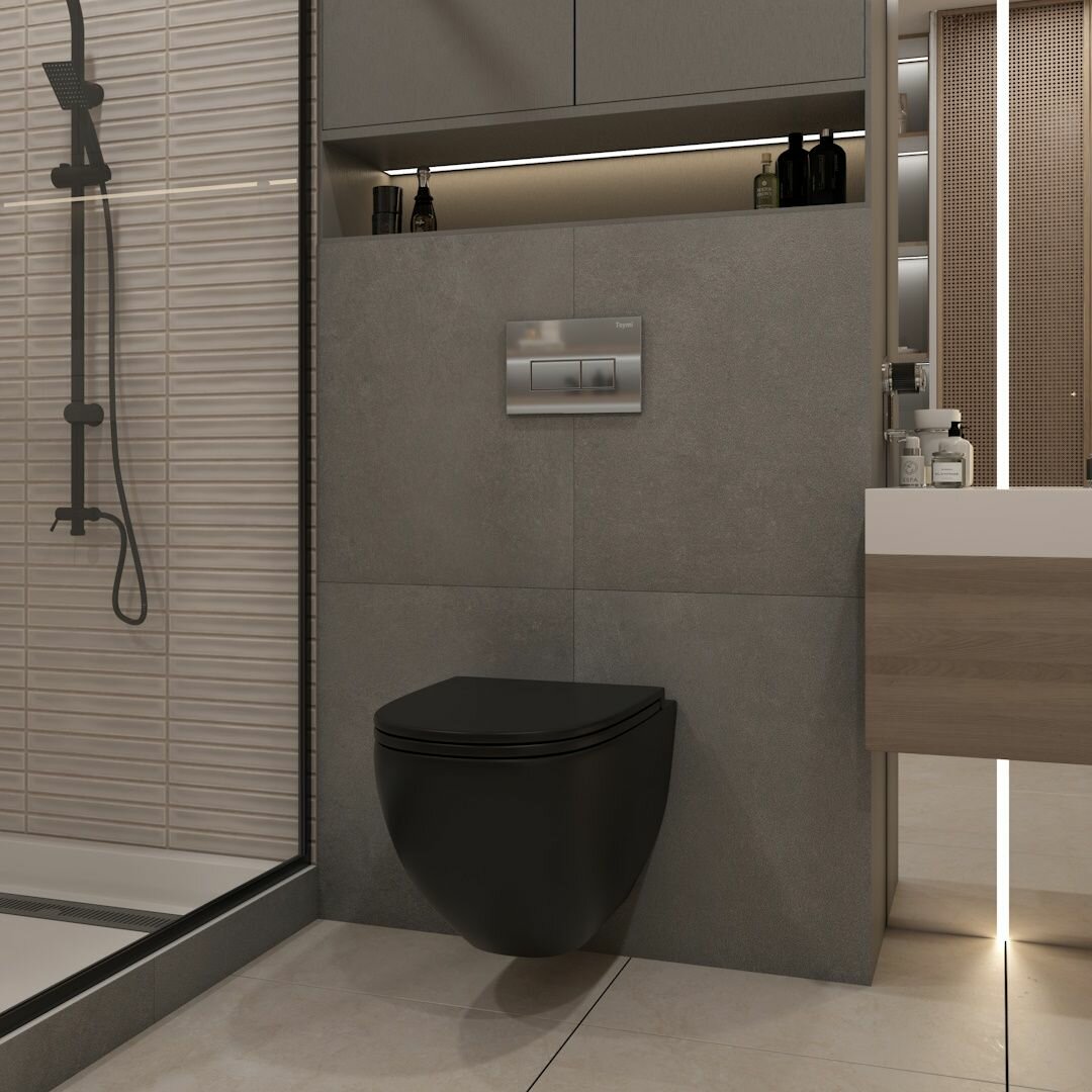 СохранитьИнсталляция с унитазом комплект 5 в 1 Teymi унитаз подвесной безободковый черный Lina S Black кнопка хром F13884 интересное:
