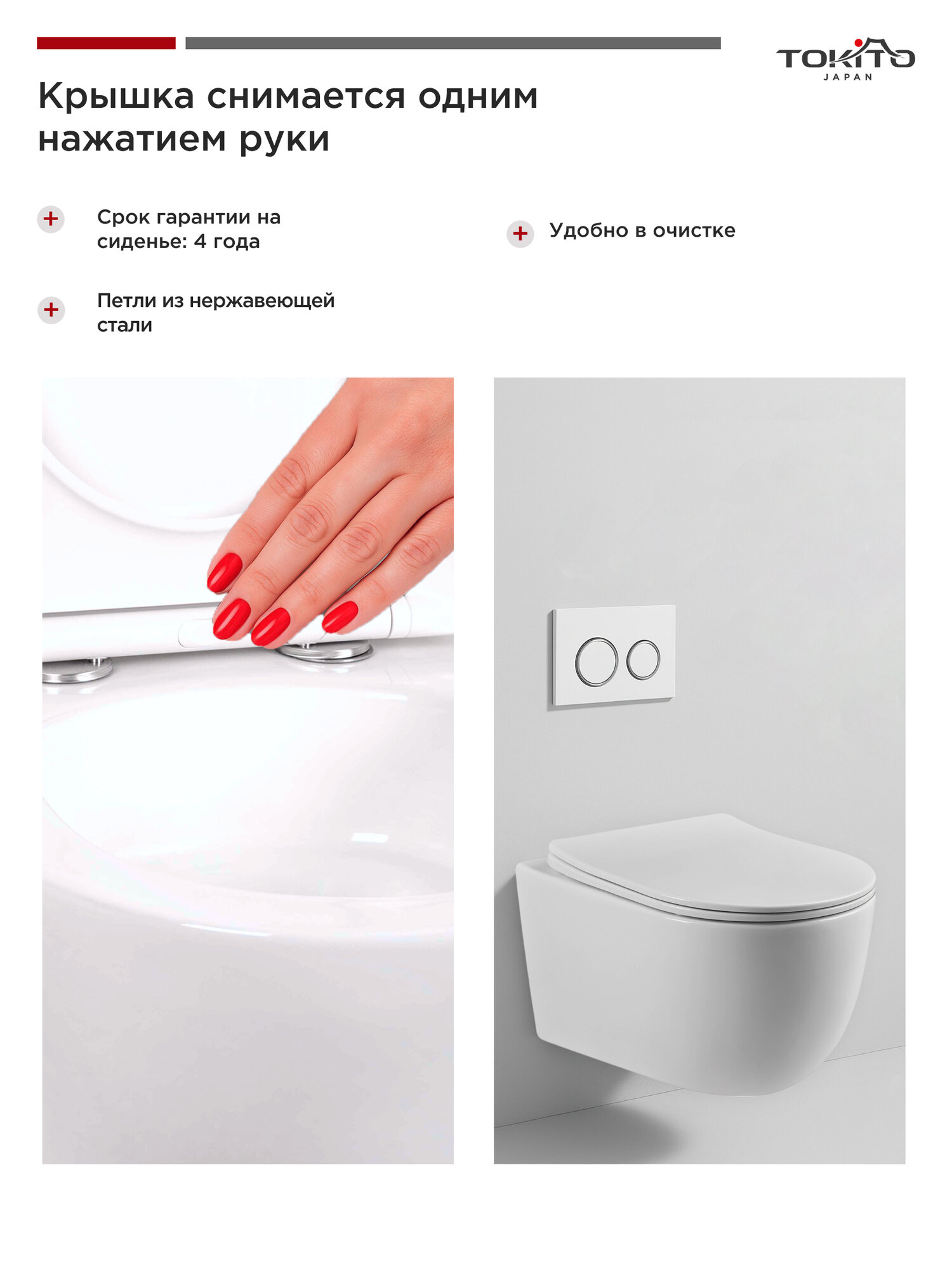 Купить Унитаз подвесной TOKITO TATSUMAKI TSUNAMI 4.0 безободковый с микролифтом, система Цунами, белый