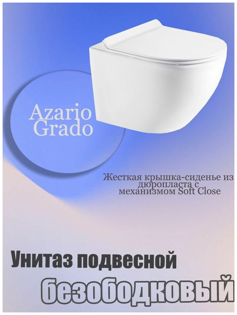 Купить Унитаз подвесной безободковый Azario Grado AZ-0046 с горизонтальным выпуском белый с сиденьем микролифт [+1_ZS4]