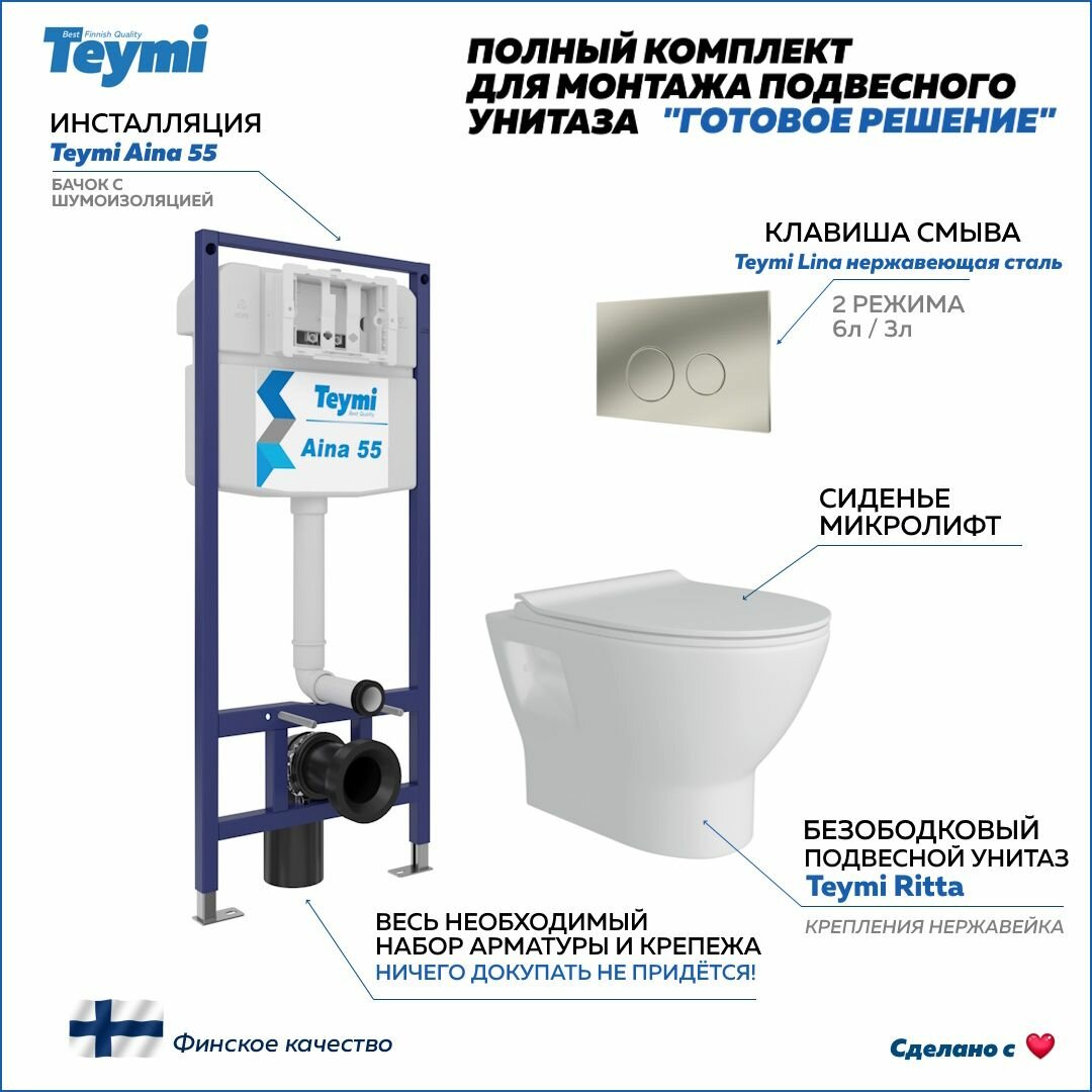 Ниже Вы можете прочитать отзывы на Инсталляция с унитазом комплект 5 в 1 Teymi унитаз подвесной безободковый Ritta кнопка нержавеющая сталь F13858, ознакомится с подробными характеристиками, посмотреть интересные обзоры и фотографии на Инсталляция с унитазом комплект 5 в 1 Teymi унитаз подвесной безободковый Ritta кнопка нержавеющая сталь F13858.