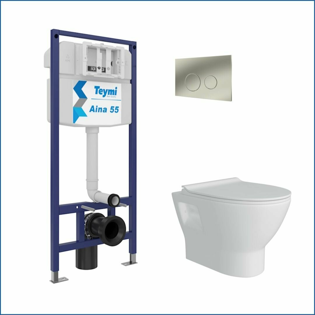 Инсталляция с унитазом комплект 5 в 1 Teymi унитаз подвесной безободковый Ritta кнопка нержавеющая сталь F13855