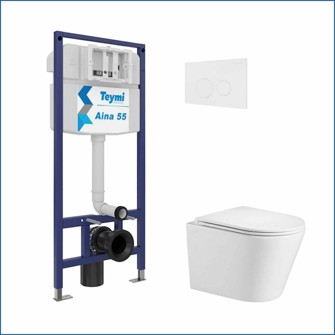 Инсталляция с унитазом комплект 5 в 1 Teymi унитаз подвесной безободковый Solli кнопка белая F13540