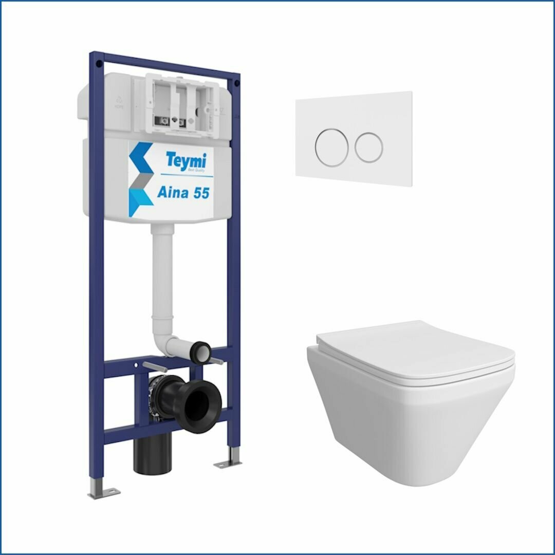 Инсталляция с унитазом комплект 5 в 1 Teymi унитаз подвесной безободковый Kati кнопка нержавеющая сталь F13701
