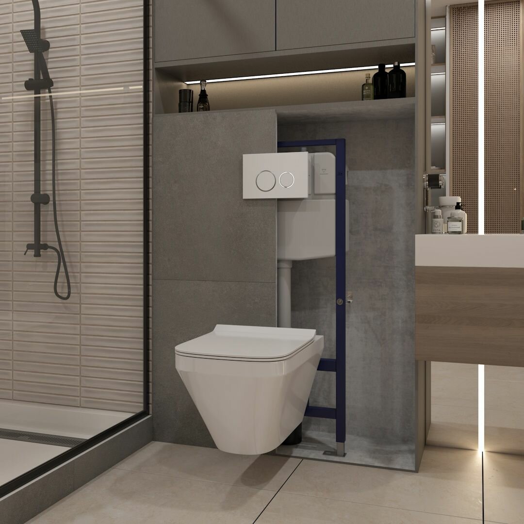 Инсталляция с унитазом комплект 5 в 1 Teymi унитаз подвесной безободковый Kati кнопка белая F13694