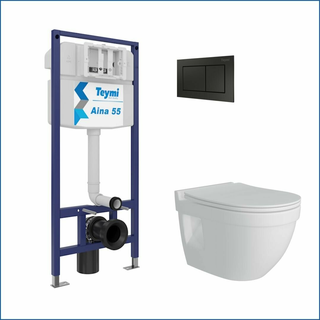 Инсталляция с унитазом комплект 5 в 1 Teymi унитаз подвесной безободковый Vitra Pro кнопка черная F13759