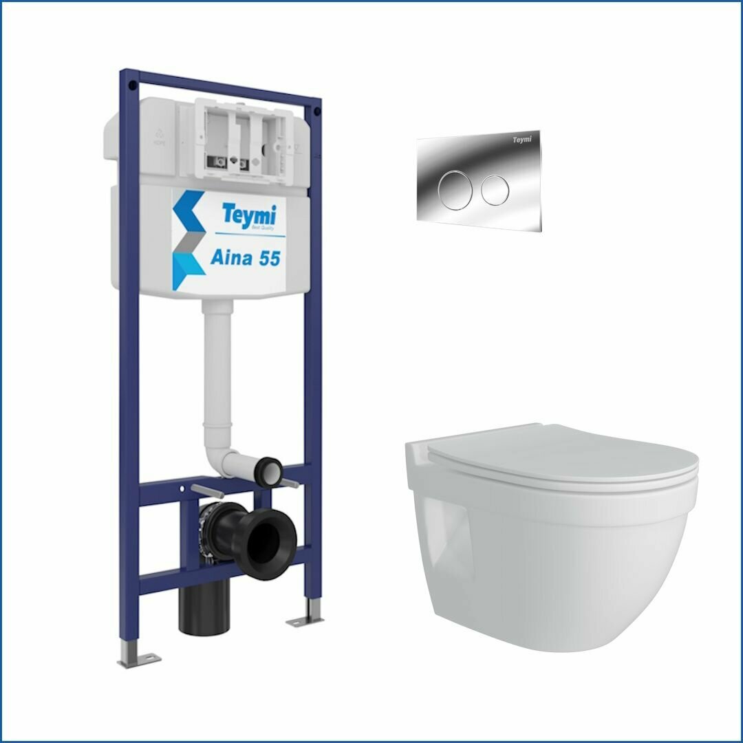 Инсталляция с унитазом комплект 5 в 1 Teymi унитаз подвесной безободковый Vitra Pro кнопка хром F13752