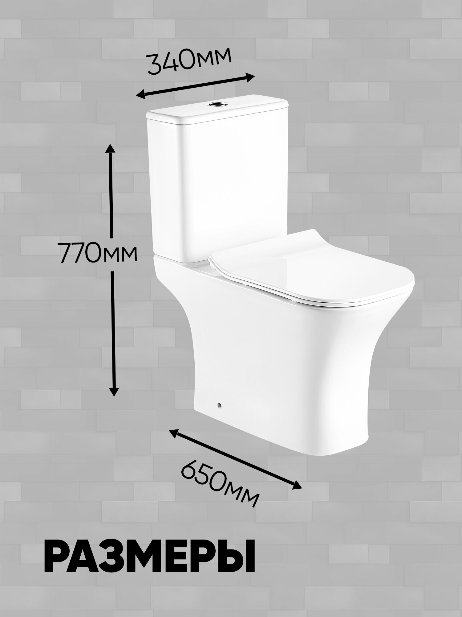 Унитаз-компакт безободковый TOKO (650*340*770мм, сиденье дюропласт с микролифтом, арматура 2-х режимная) белый интересное: