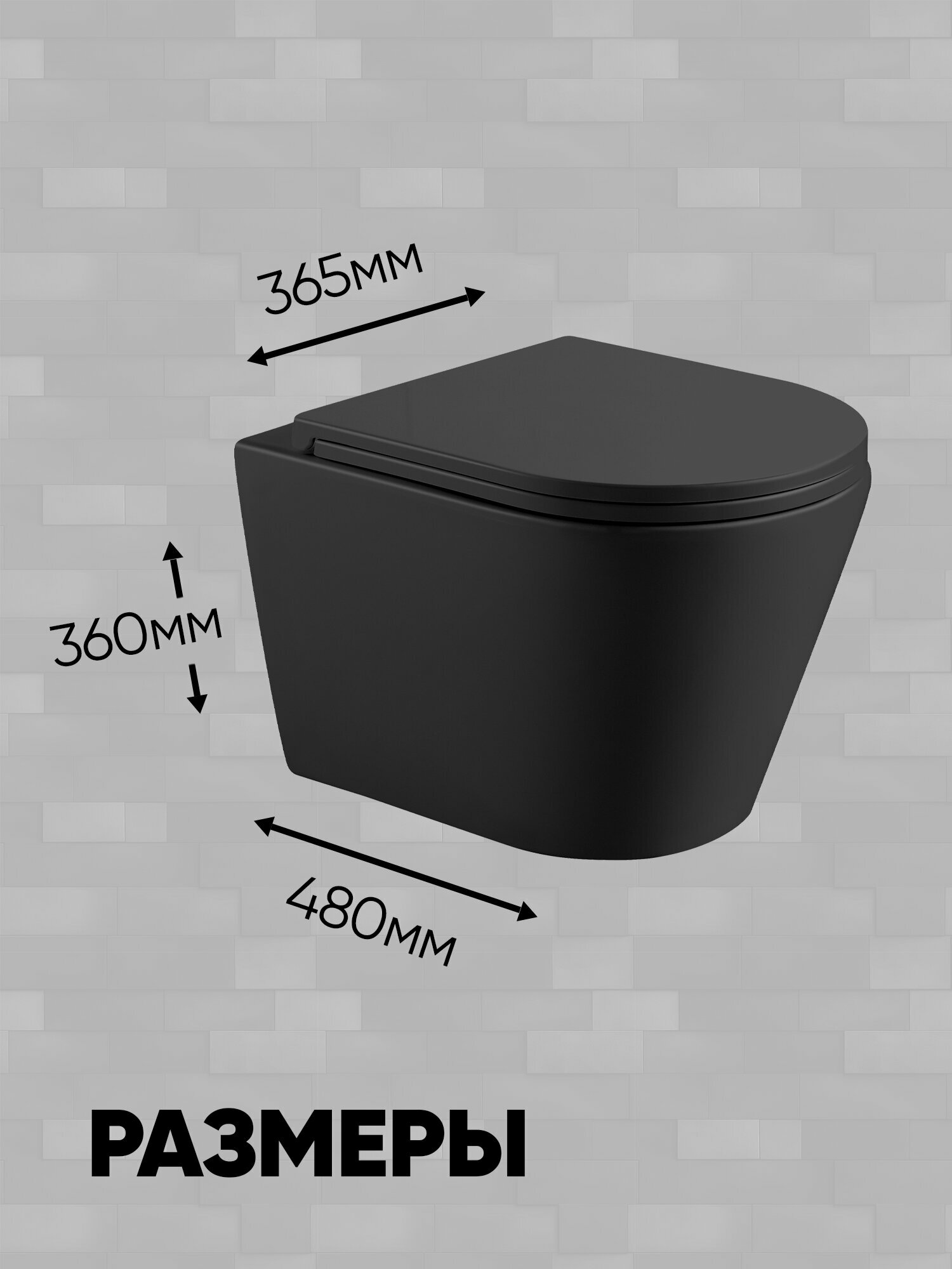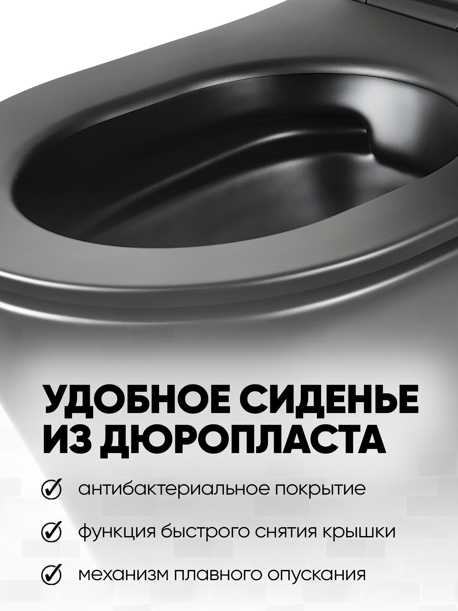 Унитаз подвесной безободковый SHELL MB (480*365*360мм, сиденье дюропласт, микролифт) черный матовый интересное:
