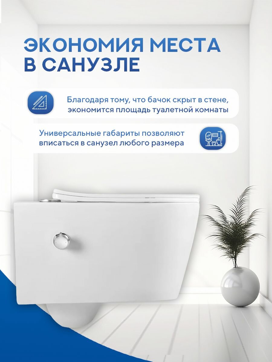 Инсталляция с унитазом комплект 5 в 1 Teymi унитаз подвесной безободковый торнадо Martta Vortex кнопка белая F14576