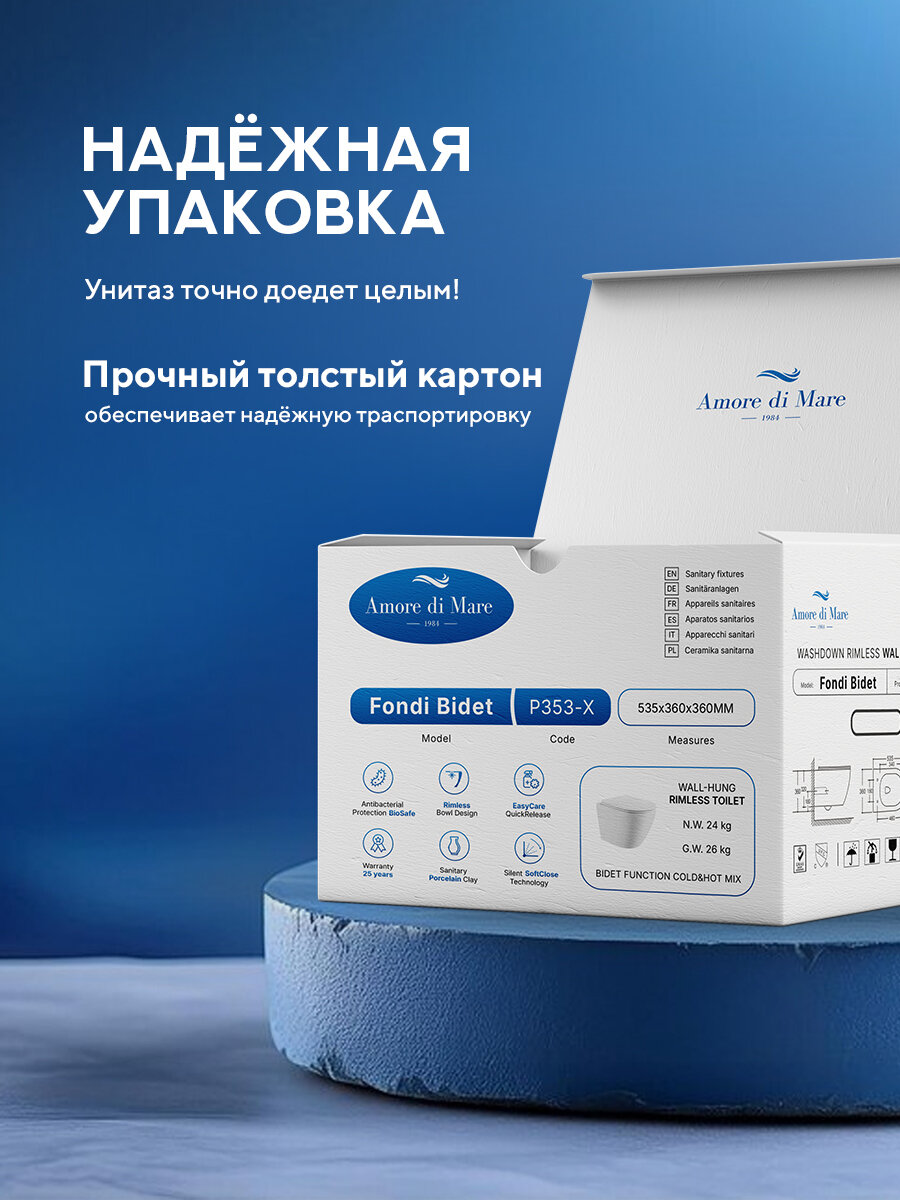 Унитаз подвесной Amore di Mare Fondi Bidet P353-X с функцией биде, фарфор, быстросъемное сиденье с микролифт интересное: