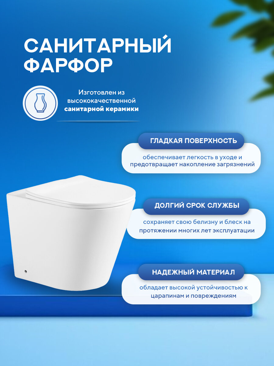 Унитаз приставной безободковый Amore di Mare Oreto PR701, фарфоровый, быстросъемное сиденье с крышкой микролифт интересное: