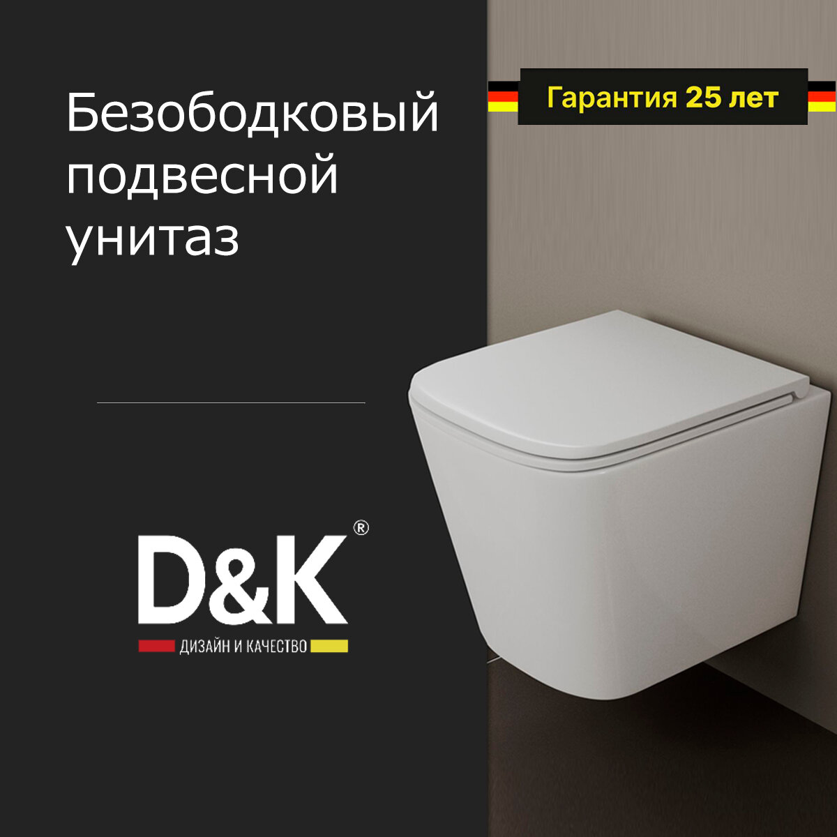 Унитаз D&K подвесной безободковый (торнадо) Berlin DT1436516 , 490х34х350 мм, сиденье микролифт, белый интересное: