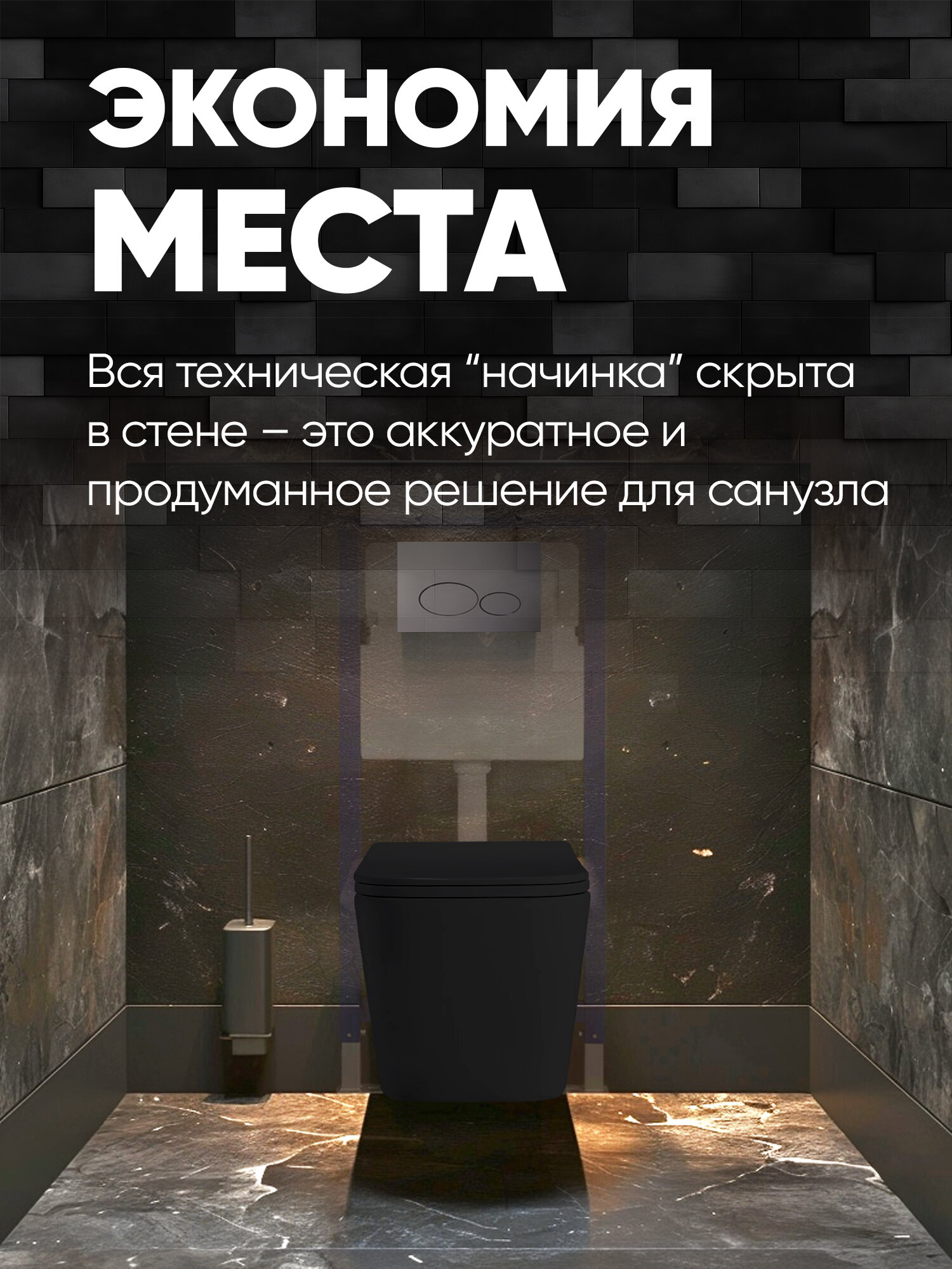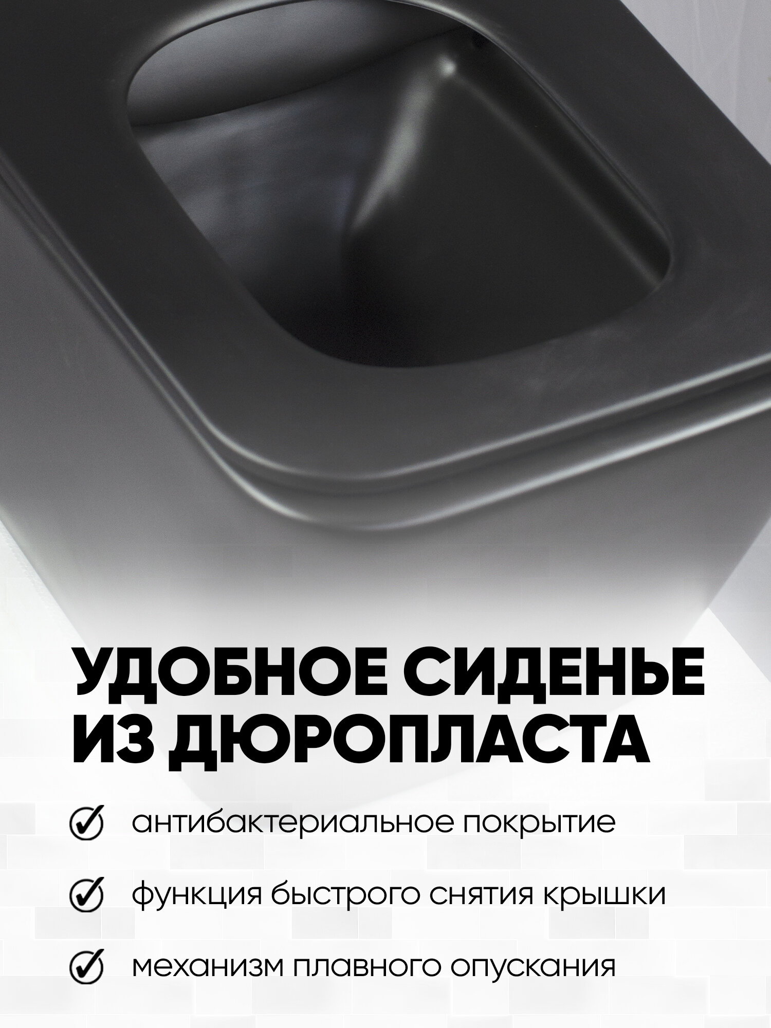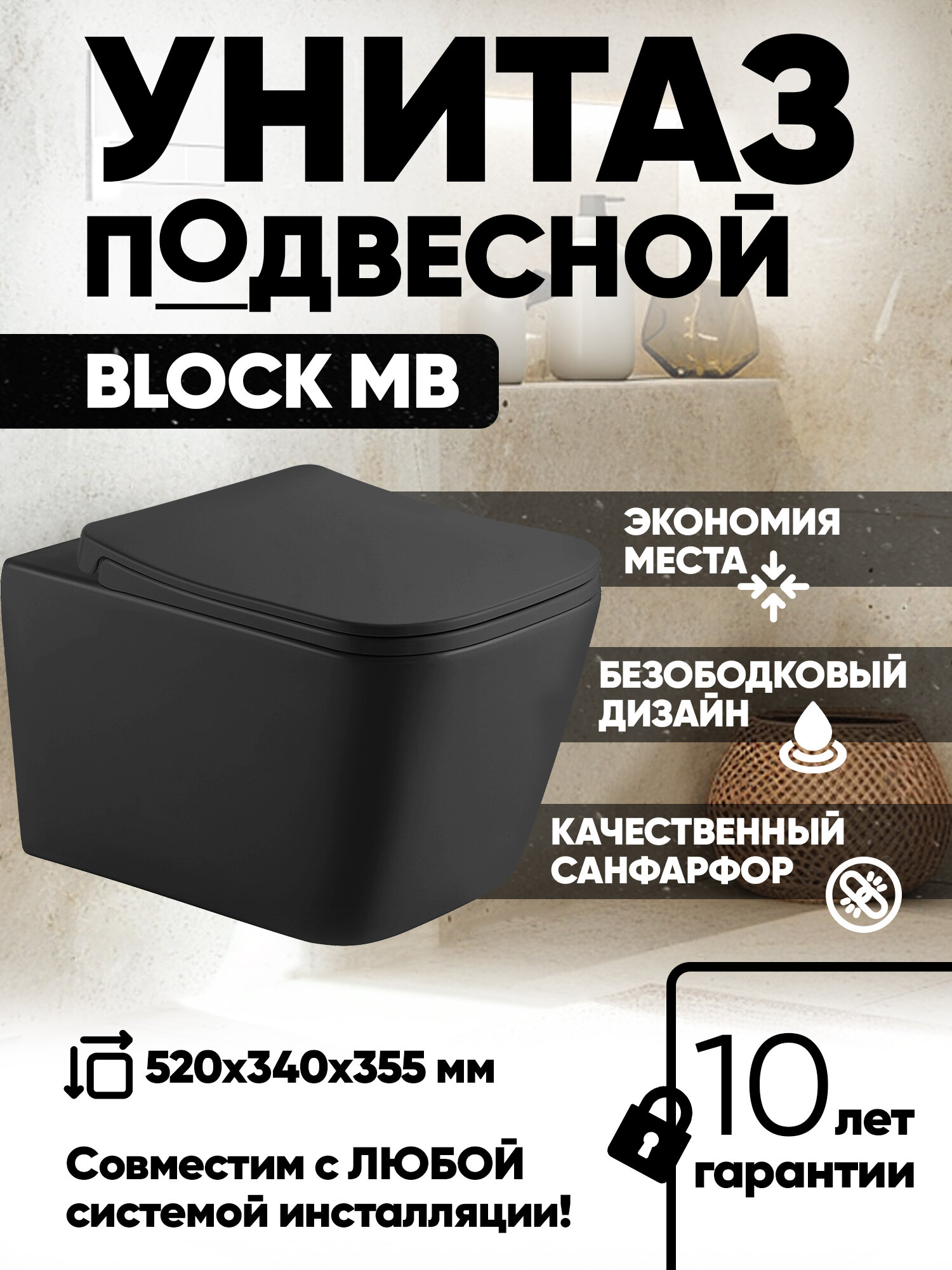 Унитаз подвесной безободковый BLOCK MB (520*340*355мм, сиденье дюропласт, микролифт) черный матовый интересное: