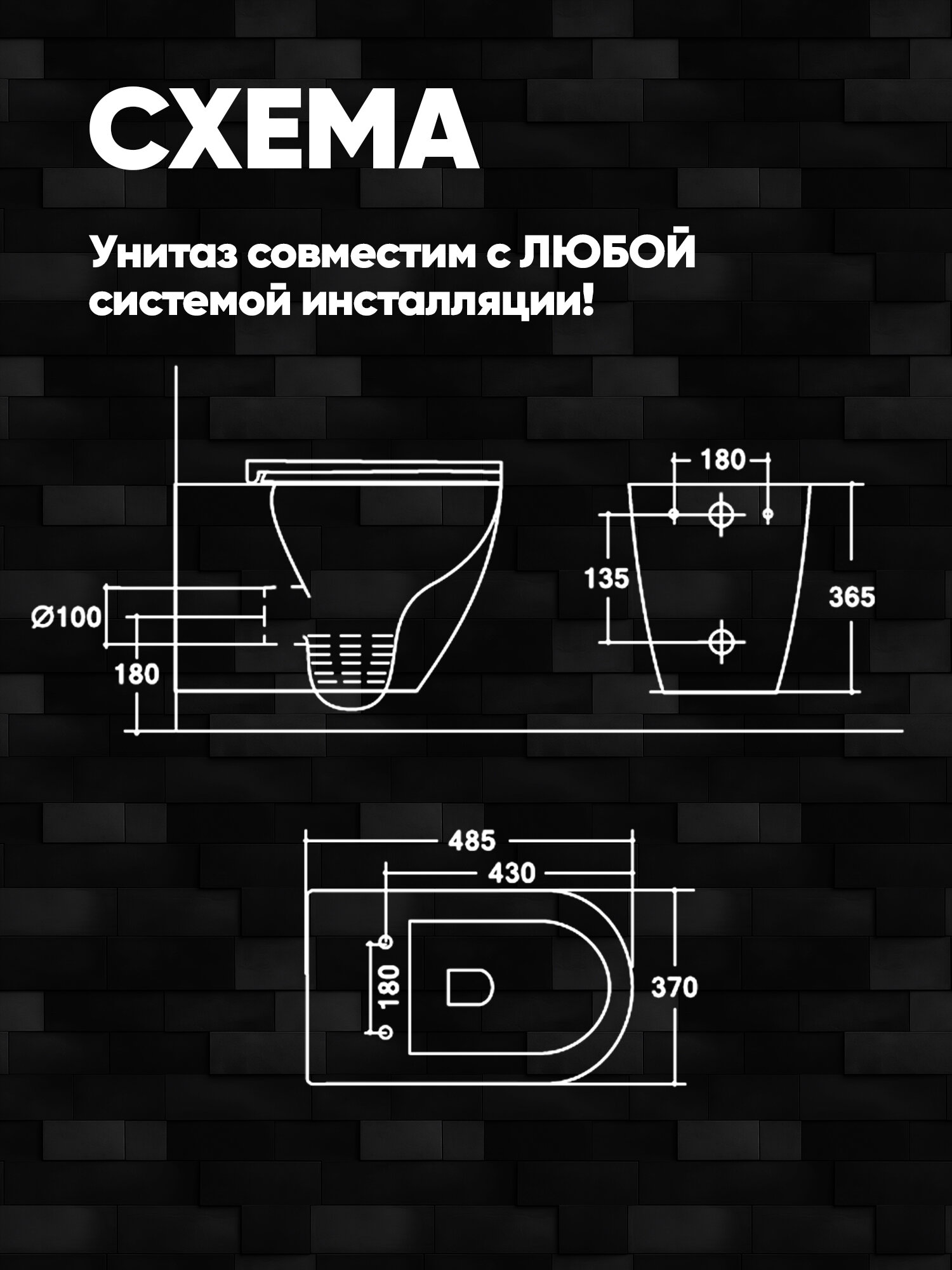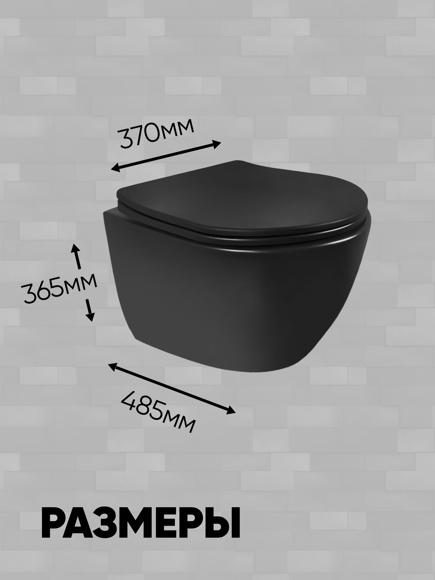 Унитаз подвесной безободковый POINT MB (485*370*365мм, сиденье дюропласт, микролифт) черный матовый интересное: