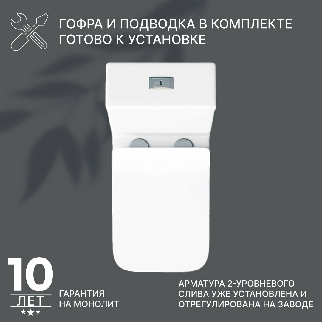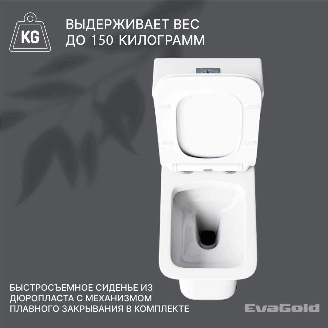 Унитаз напольный моноблок EvaGold ободковый, модель ND302.8 белый для ванной с гофрой и подводкой интересное: