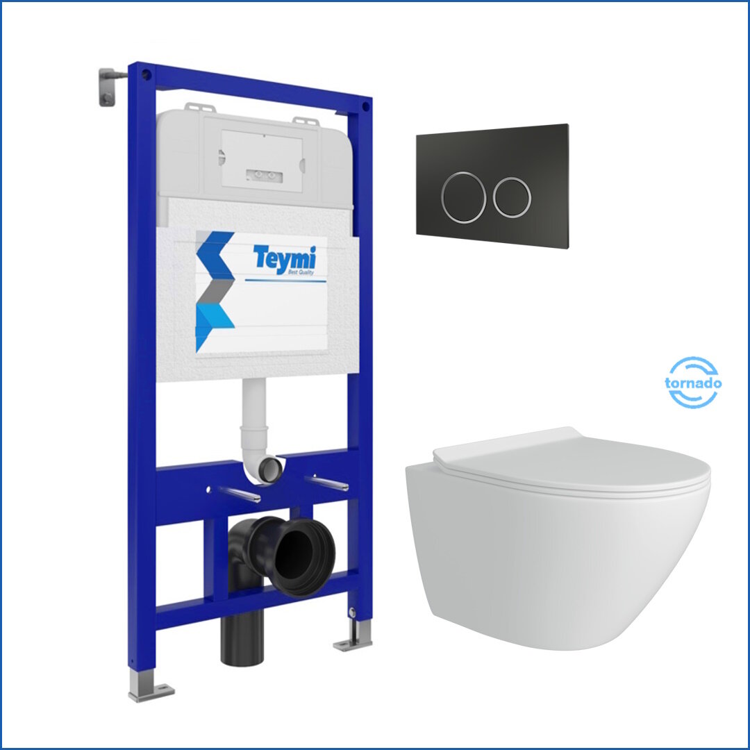 Инсталляция с унитазом комплект 5 в 1 Teymi унитаз подвесной безободковый торнадо Lina Pro Vortex кнопка черная F14449
