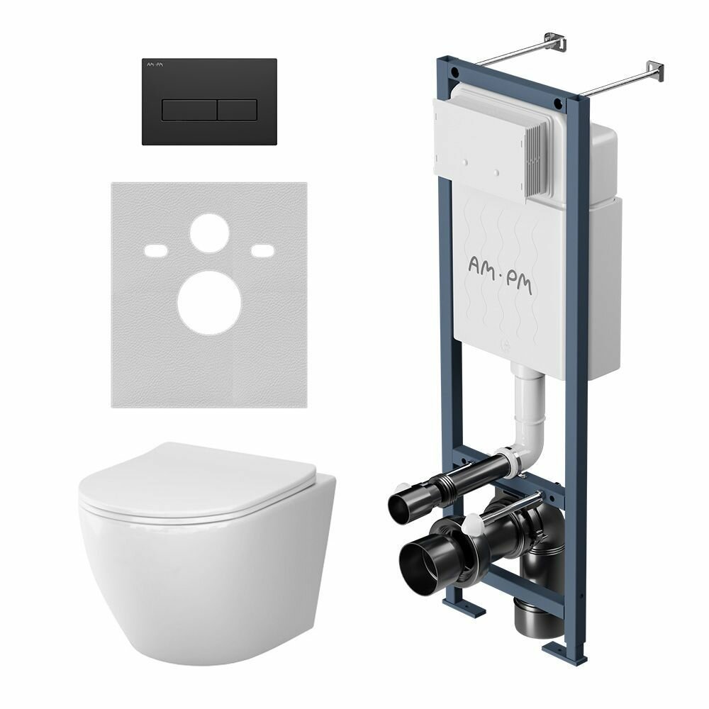 Купить Инсталляция с подвесным унитазом AM.PM Like Aquaspin с сиденьем микролифт, клавишей M черный матовый