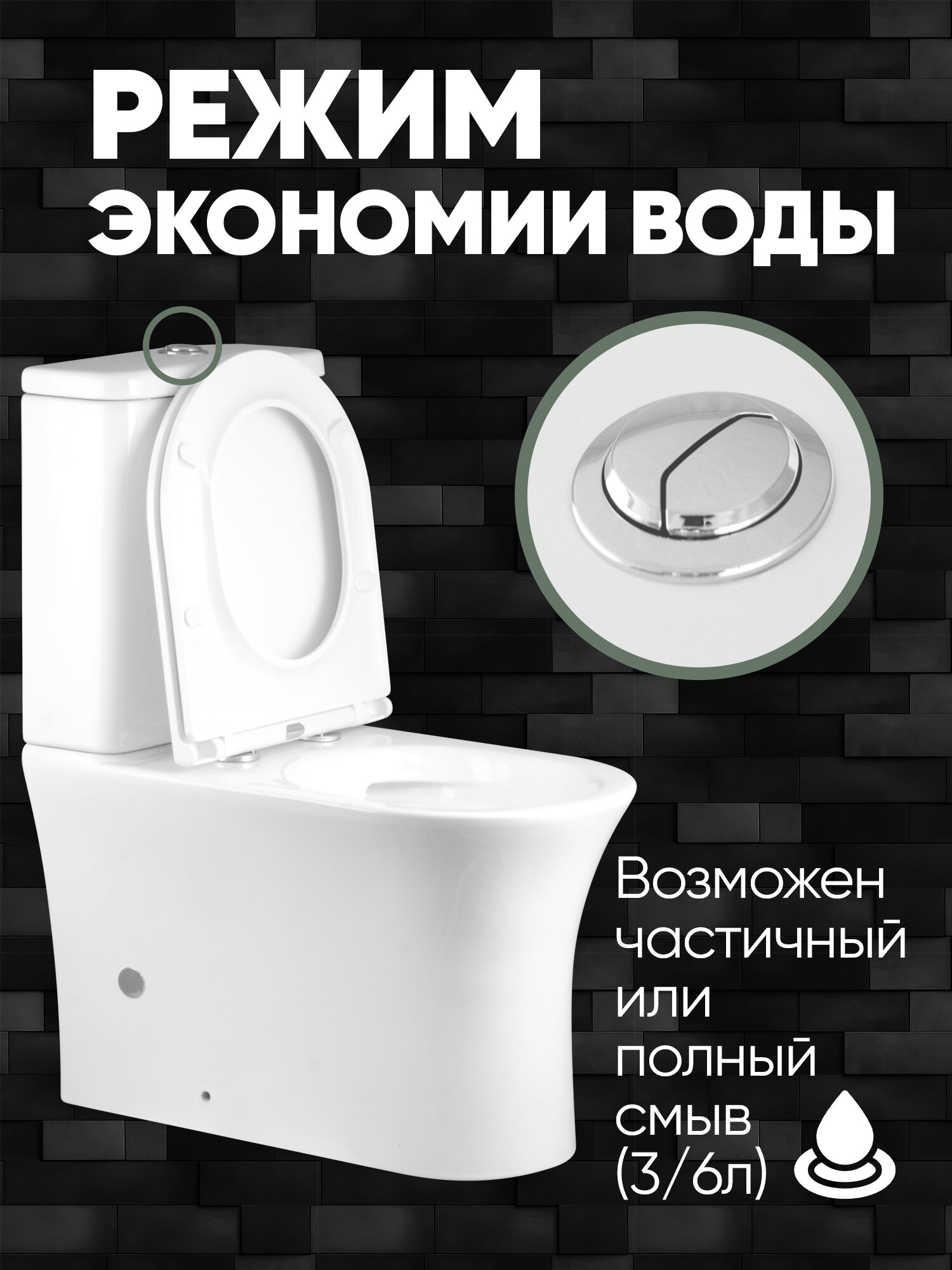 Унитаз-компакт безободковый PORT (645*380*840мм, сиденье дюропласт с микролифтом, арматура 2-х режимная) белый интересное: