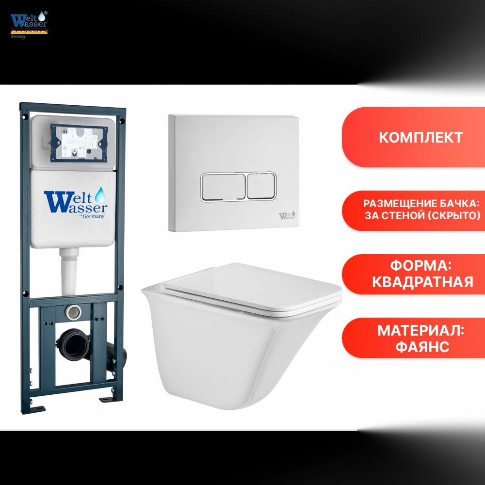Купить Комплект Weltwasser 10000010976 подвесной унитаз rotbach 004 gl-wt + инсталляция marberg 410 кнопк