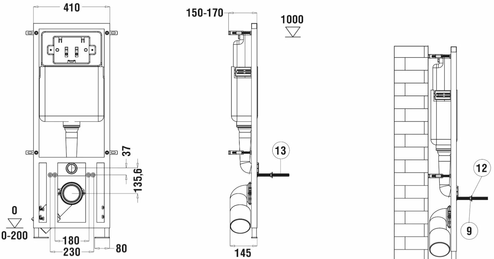 Инсталляция с унитазом WeltWasser MARBERG410 унитаз SALZBACH043MT-BL матовый черный, клавиша MAR410SEMT-BL матовый черный,