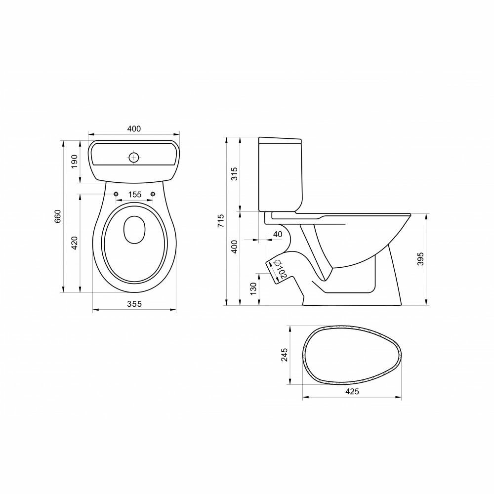 Унитаз - компакт бриз с косым выпуском 2-реж. арматура, сиденье дюропласт интересное: