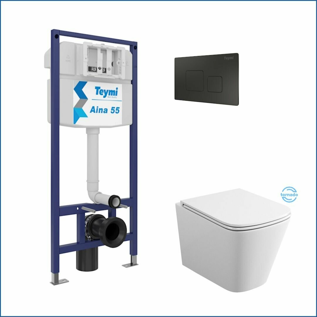 Инсталляция с унитазом комплект 5 в 1 Teymi унитаз подвесной безободковый торнадо Helmi Vortex кнопка черная F13601