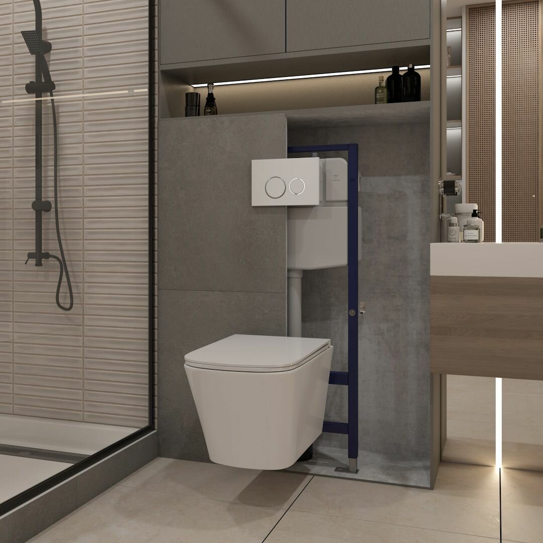 Инсталляция с унитазом комплект 5 в 1 Teymi унитаз подвесной безободковый Lina Media кнопка белая F13672