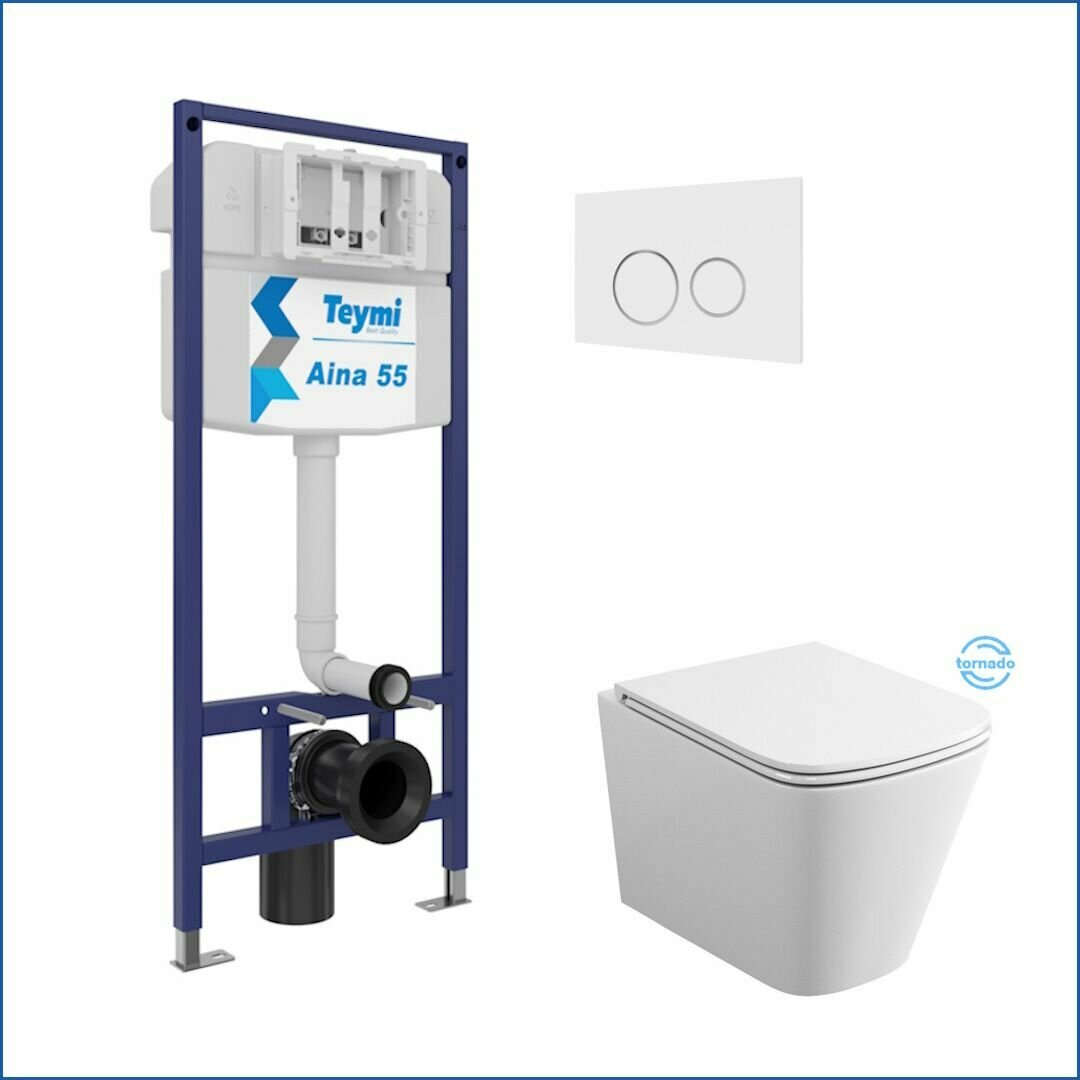 Инсталляция с унитазом комплект 5 в 1 Teymi унитаз подвесной безободковый торнадо Helmi Vortex кнопка белая F13606