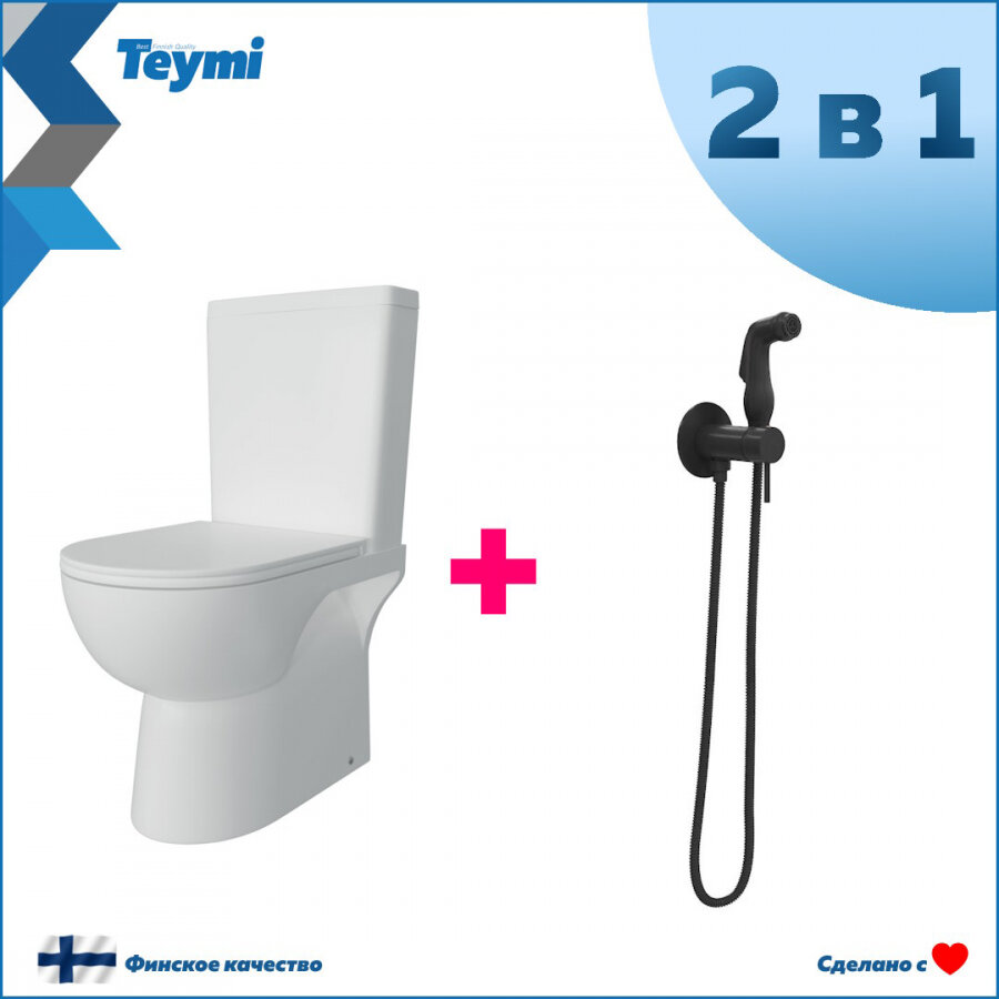 Купить Комплект Teymi 2 в 1: Унитаз напольный Aina безободковый с гигиеническим душем Lina черный матовый F10131