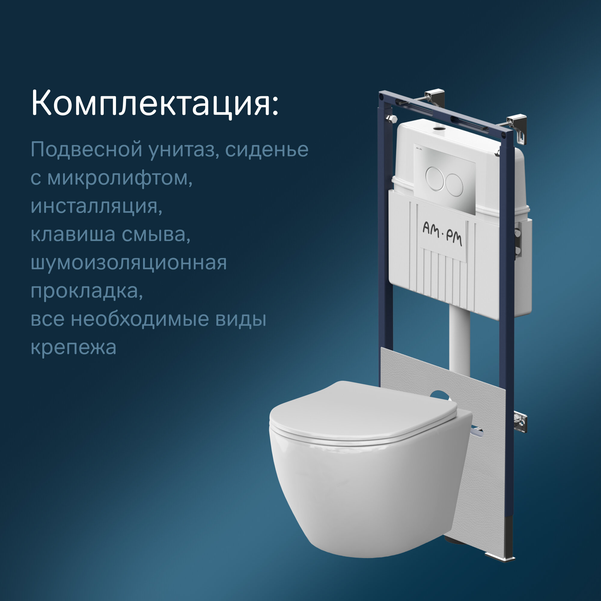 Инсталляция с унитазом AM.PM Like Aquaspin, с микролифтом, шумоизоляция, клавиша хром глянцевый