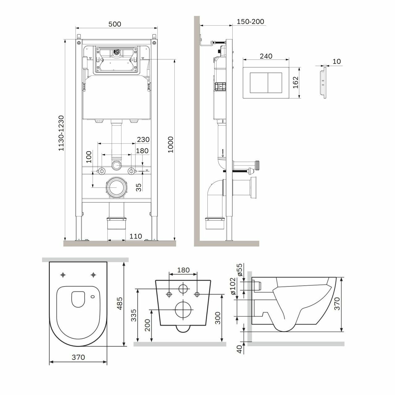 Инсталляция с унитазом комплект AM.PM Like Aquaspin безободковый, пневм. клавишей черный матовый, шумоизоляция