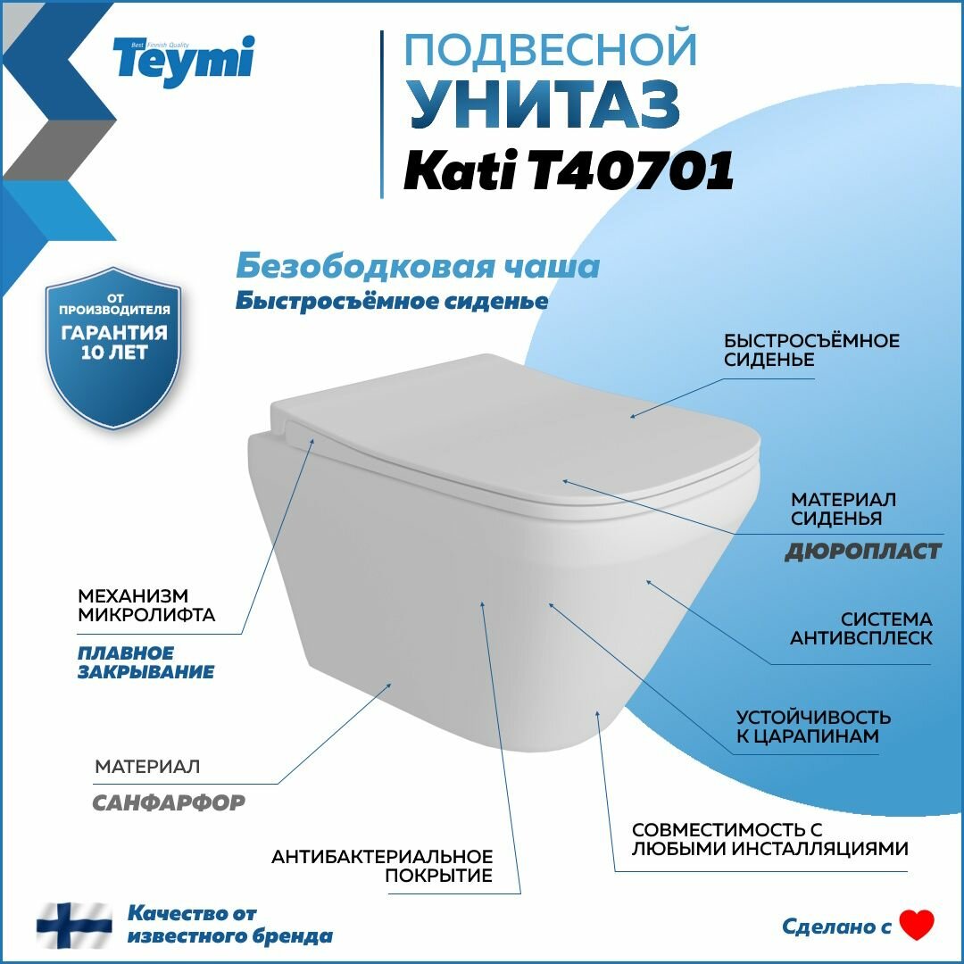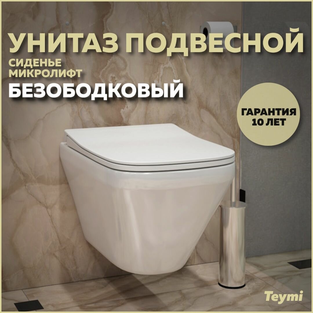 Унитаз подвесной безободковый с быстросъемным сиденьем микролифт Teymi Kati T40701 интересное: