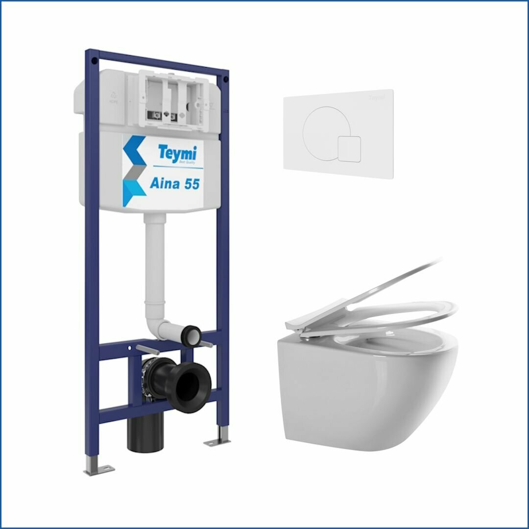 Инсталляция с унитазом комплект 5 в 1 Teymi унитаз подвесной безободковый Lina Media кнопка белая F13672